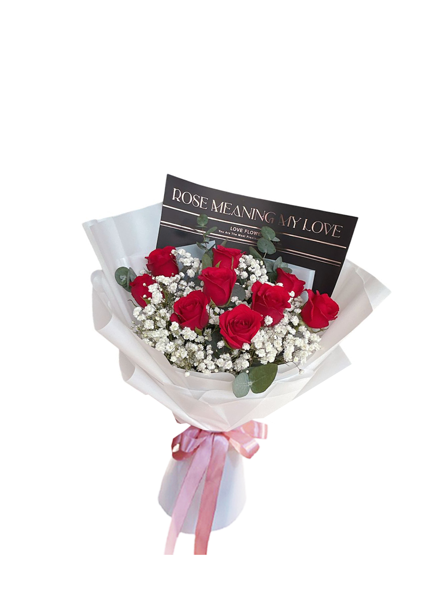 9 red rose bouquet ,baby brearh fillers