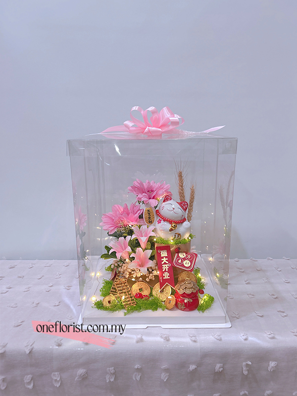 Artificial flower arrangement .Substitution depending on seasonal availability may be necessary to ensure your order arrives on time, i.e. a specific basket, vase, soft toy etc. Our florists will substitute a similar element of equal or greater value. Our florists will consult and inform you prior to the substitution.
