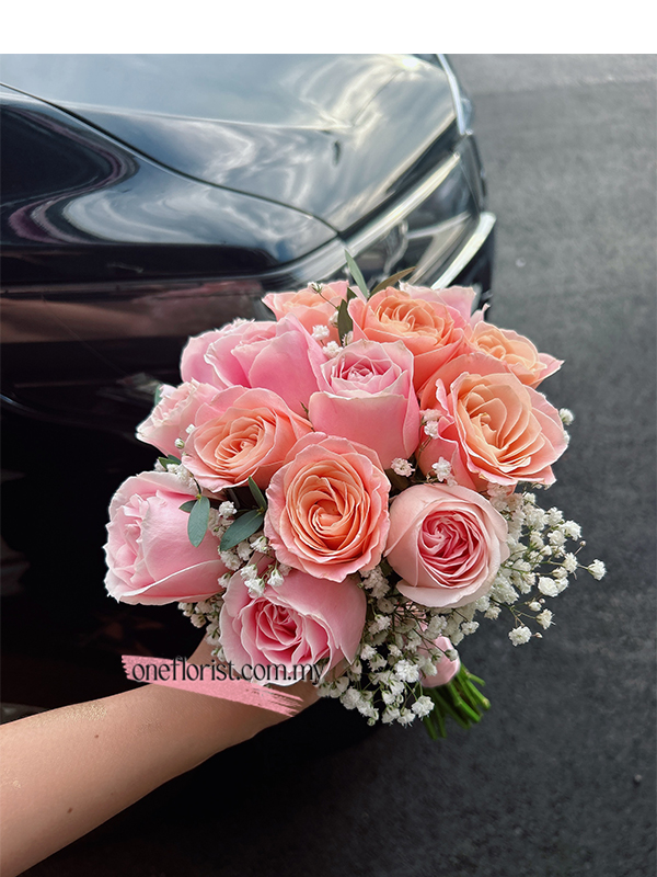 Mix Pink roses wedding bouquet
